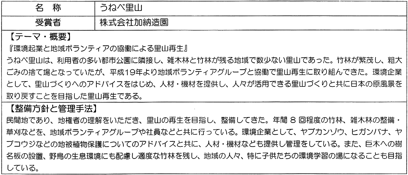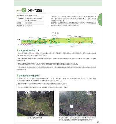 地域と共同で里山整備に取り組みをした「うねべ里山」が、日本ビオトープ協会より2019年6月出版の「ビオトープづくりの心と技」に掲載されました。