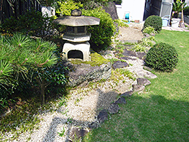 玉石・水草を植え、伝統的な日本の庭に和モダンイズムを取入れ、トンボやメダカが群れるビオガーデンです。是非一度ご覧ください。