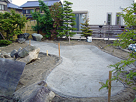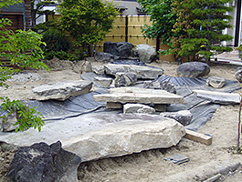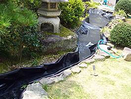 防水シート張り・景石工事