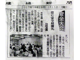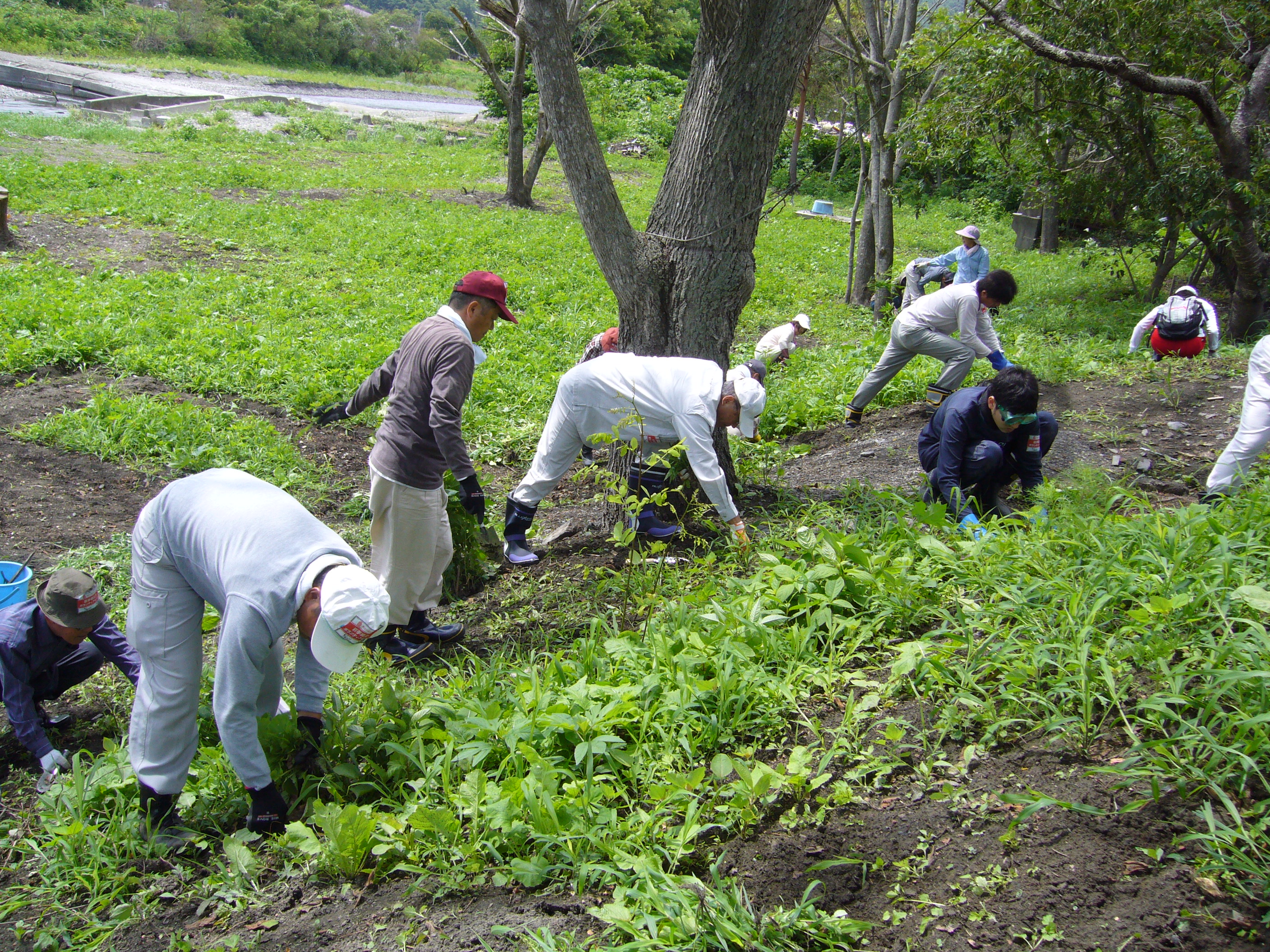 - ①2011年7月21日(木)〜24日(日)迄「東日本大震災被災地支援ボランティア」(名古屋市社会福祉協議会主催)に参加し、岩手県上閉伊郡大槌(おおつち)町で河川敷のガレキ片づけに参加。(参加者ー代表取締役 加納一弘)